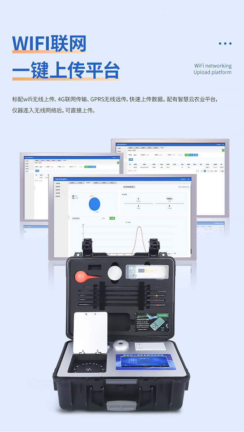 ★12、儀器標(biāo)配wifi無(wú)線上傳、4G聯(lián)網(wǎng)傳輸、GPRS無(wú)線遠(yuǎn)傳,快速上傳數(shù)據(jù)。