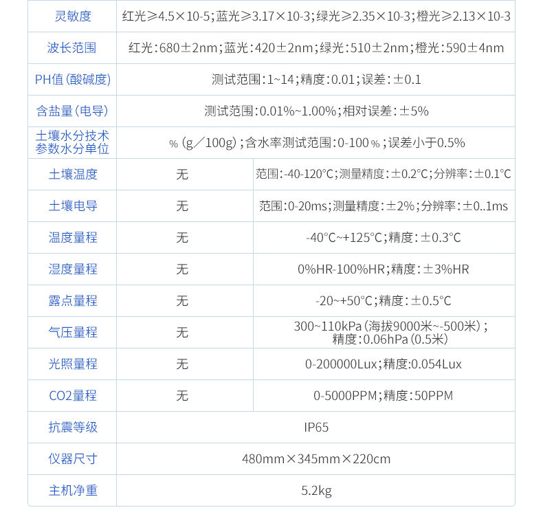 11.土壤水分技術(shù)參數(shù)水分單位:﹪(g/100g);含水率測(cè)試范圍:0-100﹪;誤差小于0.5%