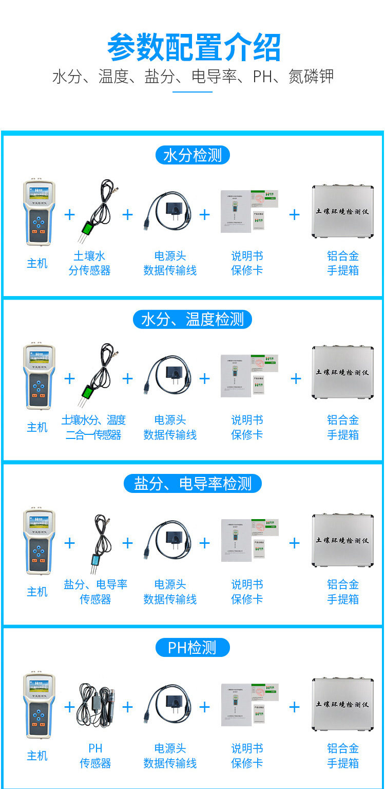 土壤PH測定儀采用一體化結(jié)構(gòu)設(shè)計(jì),外置SD卡,主機(jī)可以實(shí)時采集被測環(huán)境土壤的溫度、水分、鹽分、PH等多個參數(shù),一鍵上傳數(shù)據(jù)等。