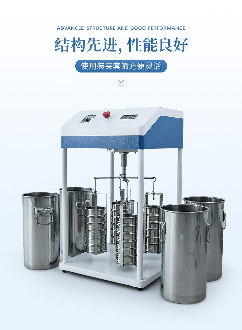 3、結(jié)構(gòu)先進,性能良好,使用裝夾套篩方便靈活。