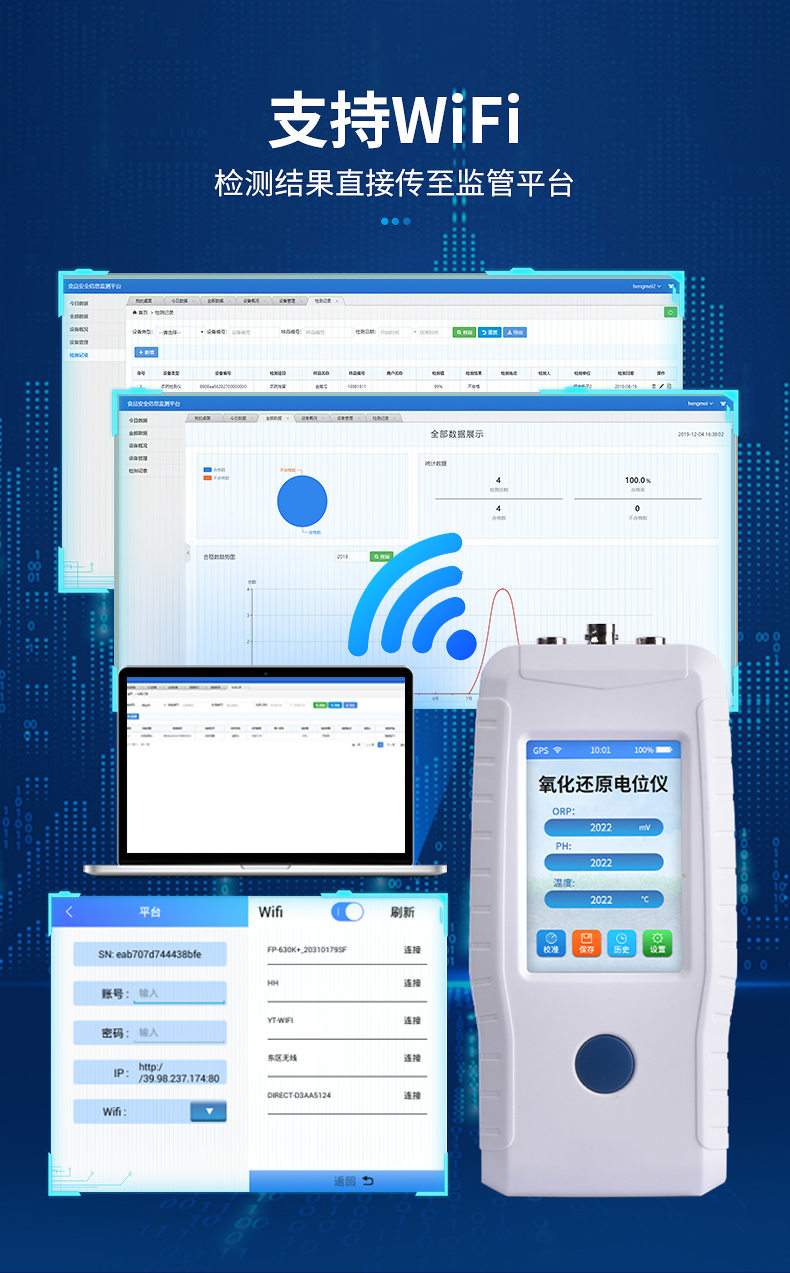 ●支持Wi-Fi,檢測(cè)結(jié)果直接傳至監(jiān)管平臺(tái)
